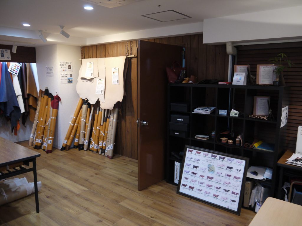 ショールームには定番革がずらりと並んでいます。