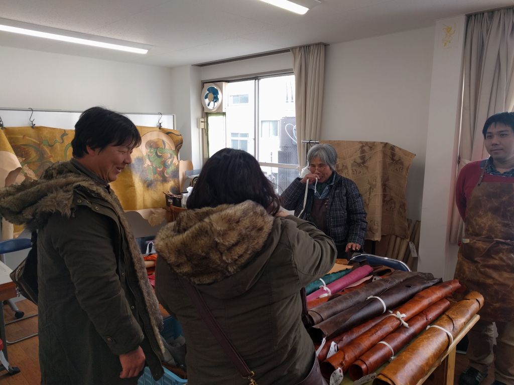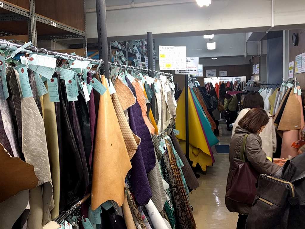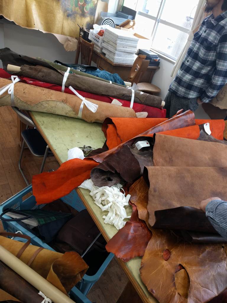 アークレザージャパンさんはタンナーさんですが自社でお持ちのアウトレット革を多少持ってきてもらいました。