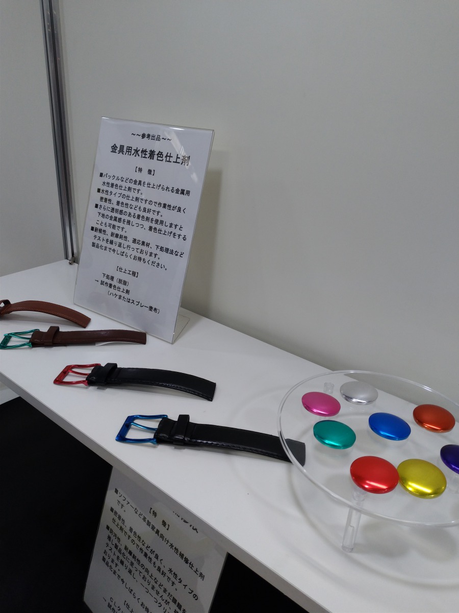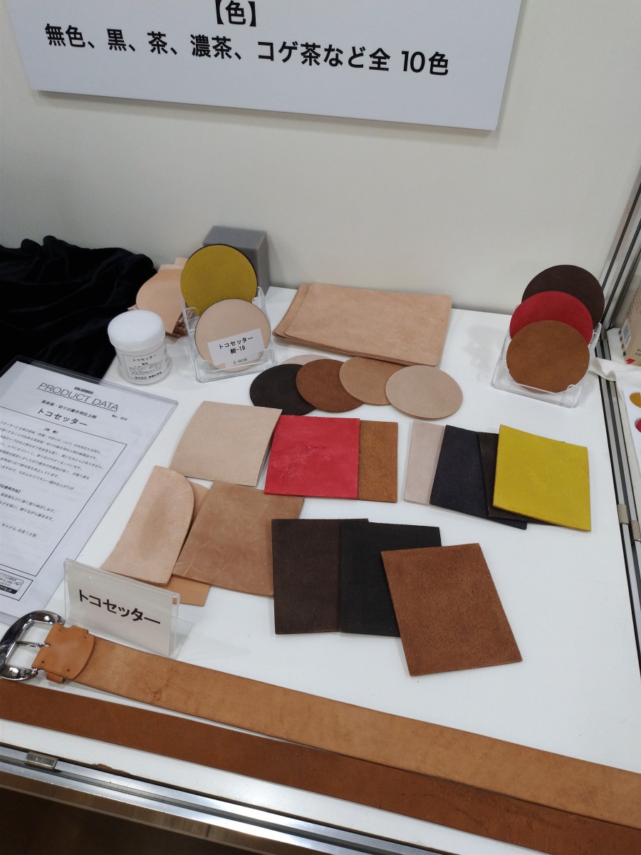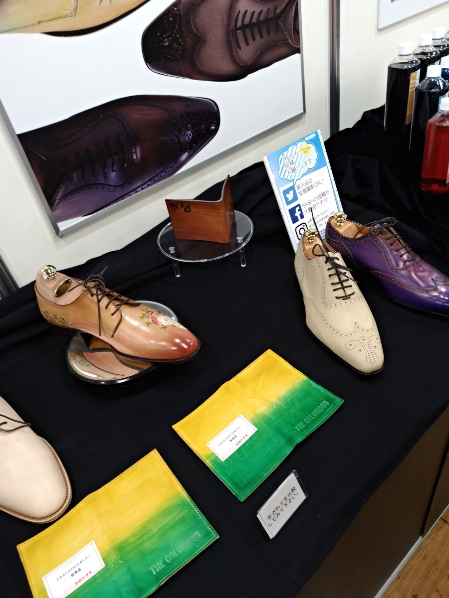 コロンブスのブースでは新作の染料やトコ磨きなどの展示。
