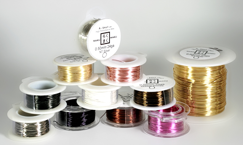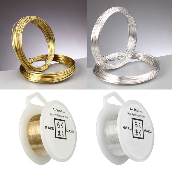 色が変色しない<らくまく>ワイヤーはアクセサリーや天然石・パールを用いたグレードの高い装身具をハンドメイドしたり、服飾の飾りとしてワイヤーで形を作るなど、真鍮加工品より柔らかく、日常使っていて適度な強度と耐久性が比較的高いことから人気が高まっています。