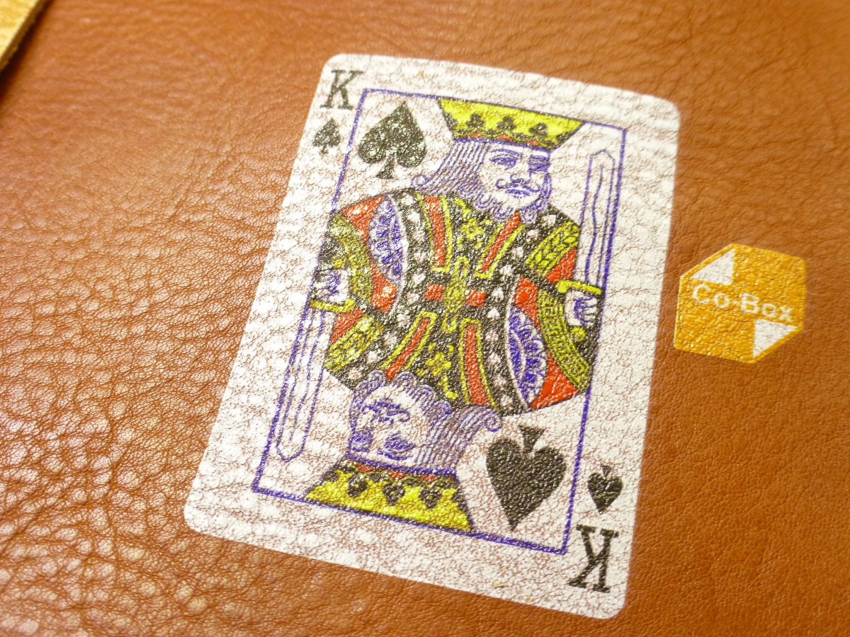 今回はタンニン鞣しの革のサンプルやA4サイズを持ってきてくれています。