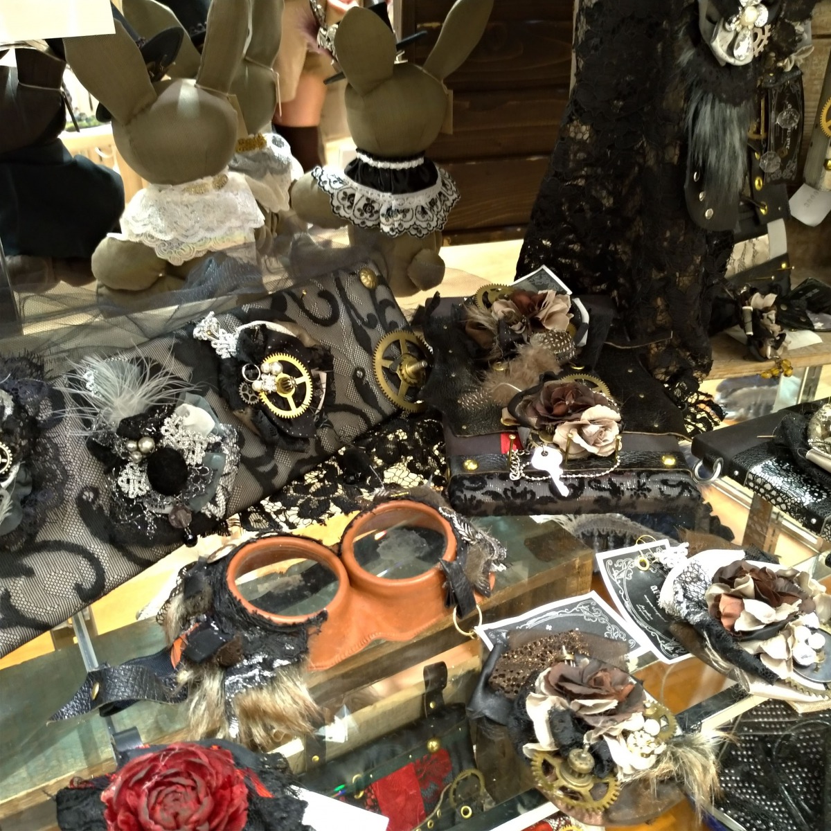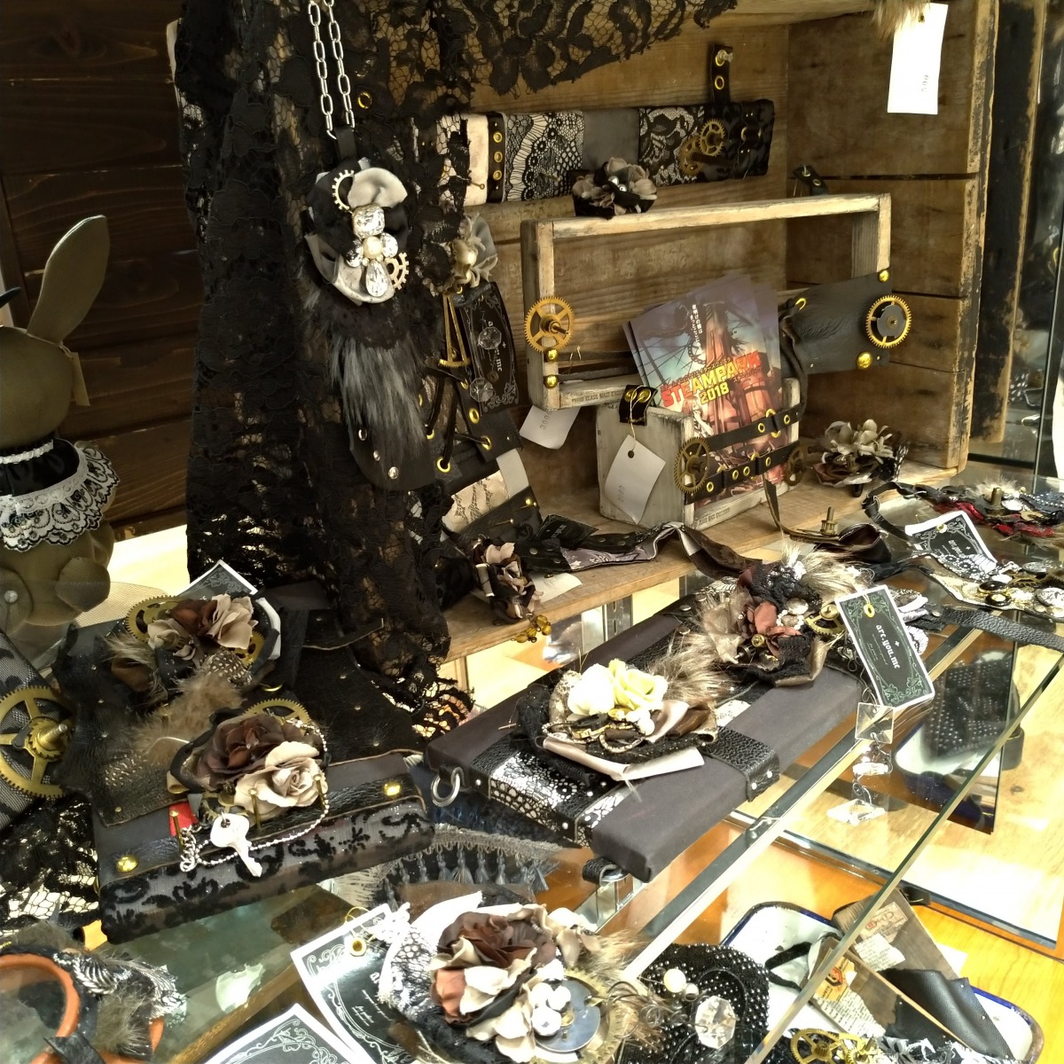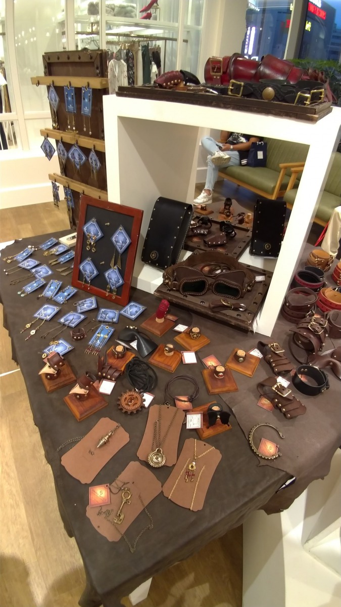 今回はスチームパンクのイベントに招かれましたので「革以外の素材も扱うけど、ものづくりをやっている人なら興味持ちそうな素材」「スチームパンクに興味ある人ならば食指が動きそうな材料やセミナー・ワークショップ」を揃えました